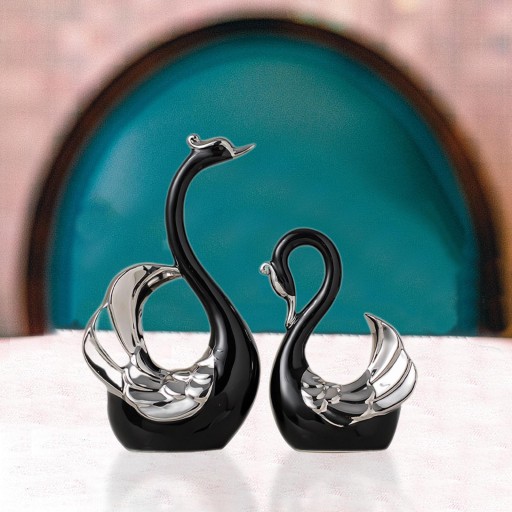 Фарфоровые фигурки лебедей, парные фигурки, современные для декора дома, черные