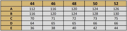 TABELA ROZMIARÓW - POMIARY NA PŁASKO: