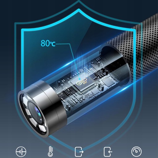 Ta sonda kamery węża jest wodoodporna IP67, ma 3 regulowane poziomy jasności, dzięki czemu możesz mieć wyraźniejszy obraz w ciemnym otoczeniu. Dzięki unikalnej technologii ochrony przed temperaturą, która radzi sobie w trudnych warunkach. Gdy temperatura przekroczy 80 ℃, wyłączy się automatycznie w celu ochrony endoskopu.
