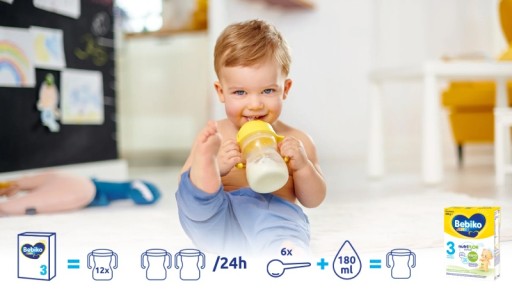 Zaleca się, aby przejście z karmienia Bebiko 2 nutriFLOR EXPERT na Bebiko Junior 3 nutriFLOR EXPERT przeprowadzać stopniowo, zmniejszając ilość proszku Bebiko 2 nutriFLOR EXPERT i zwiększając ilość proszku Bebiko Junior 3 nutriFLOR EXPERT. Bebiko Junior 3 nutriFLOR EXPERT może również służyć do przygototywania kleików i bezmlecznych kaszek Bobovita.