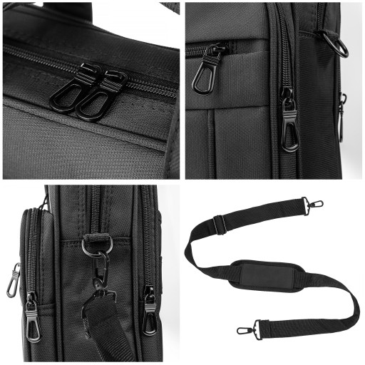 Pojemna i poręczna torba o łącznej ilości komór i kieszeni: 5. Wysoka jakość wykonania i wodoodporność zapenią bezpieczeństwo i komfort.
