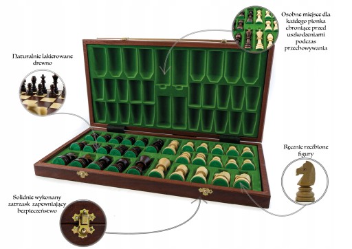 Orawa jest prawdziwie unikatowym kompletem szachów, w który można grać zarówno w klubach szachowych, przygotowując się do turniejów, jak i w domu, z rodziną. Rzeźbione ręcznie w lipowym drewnie figury mają kształt drewnianych klocków. Każdej figurce nadano indywidualny charakter - króla, królowej, gońca, skoczka, wieży i piona Te figurki niektórym przypominają postaci z Minecrafta lub stonehenge Ale to naprawdę niezwykły design, który pocieszy oko perfekcjonisty - każde wglębienie i wypukłe elementy zostały zrobione w precyzyjny sposób. W skład kompletu poza figurami wchodzi również intarsjowana drewnem mahoniowym i jaworowym szachownica, wewnątrz której, umieszczono specjalną wkładkę służącą do przechowywania figur szachowych. Więc nie musisz się martwić o prezent na każdą okazję, już wiesz, co wybrać, bo komplet szachów Orawa, to naprawdę dobry wybór - polecamy!