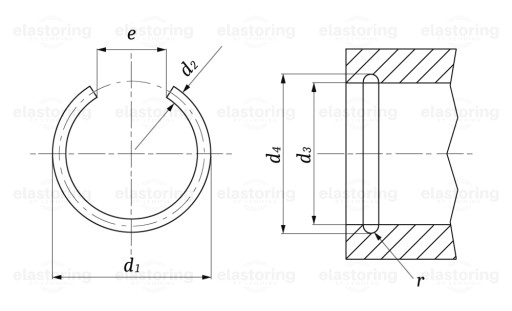 Pierścień osadczy typu B stosowany w mechanice jako zabezpieczenie uszczelnienia lub łożyska. Może być używany również jako podkładka dystansowa. Wykonany z drutu o przekroju okrągłym, z wysoce odpornej i sprężystej stali węglowej. Umieszczony w otworze blokuje elementy i zapobiega ich przesuwaniu pod działaniem różnych sił (drgań, uderzeń, itp.).