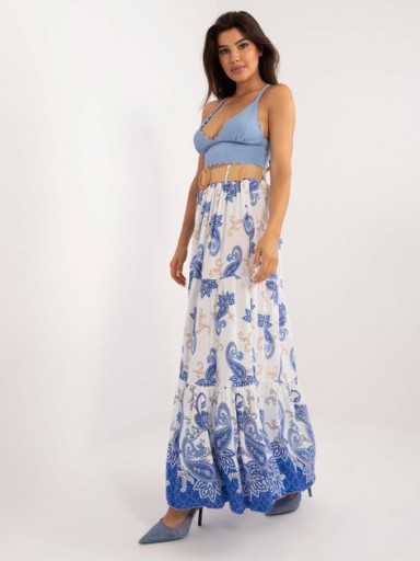 Wymiary spódnicy w rozmiarze one size mierzone na płasko: szerokość w pasie - 34 cm, długość całkowita - 108 cm.