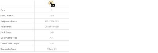 - Wzmocnienie @ 617 –960 MHz: 6dBi