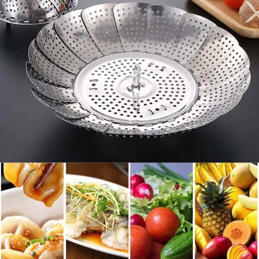 PAROWAR STALOWY WKŁAD DO GOTOWANIA NA PARZE ROZKŁADANY koszyk sitko 26 cm