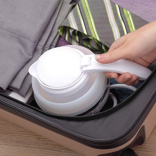 Ten składany mini czajnik elektryczny ma w stanie złożonym rozmiar tylko 9,7 cm, a po rozłożeniu 17,2 cm. Dzięki pojemności 600 ml i wadze 0,83 oz nasz czajnik elektryczny ze względu na swoją składaną konstrukcję jest bardzo wygodny i lekki w podróży. Pozwala zaoszczędzić dużo miejsca podczas pakowania.