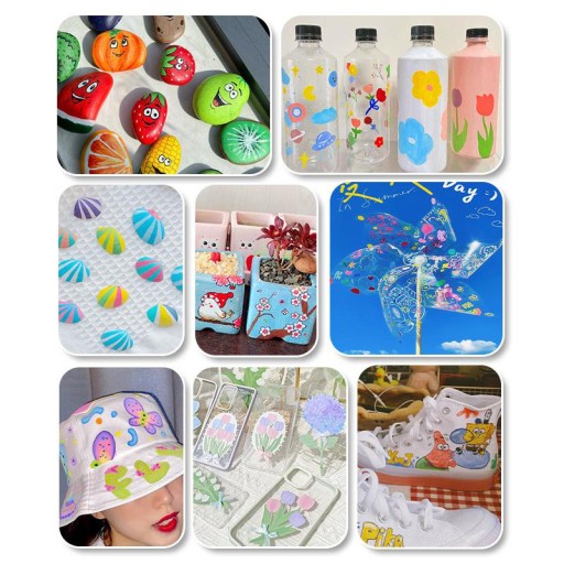 - Zastosowanie produktu: Do malowania i majsterkowania można używać kamienia, muszli, szkła, ubrań, pudełek papierowych, liści, butów i innych materiałów