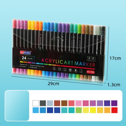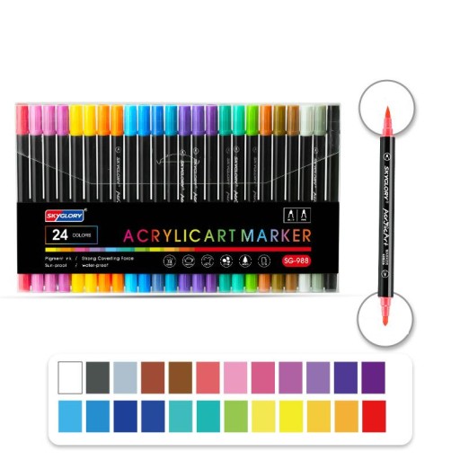 - ☑️Zestaw markerów akrylowych zawiera 24 międzynarodowe standardowe kolory, które są bogate w kolory. Możesz znaleźć wszystkie kolory, których chcesz, przez skuwkę długopisu.
