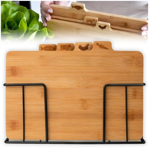 4x НАБОР ДЕРЕВЯННЫХ КУХОННЫХ РАЗДЕЛОЧНЫХ ДОСОК + ПОДСТАВКА-ОРГАНИЗАТОР