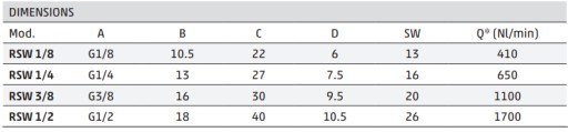 Te jednokierunkowe i dwukierunkowe regulatory przepływu zostały zaprojektowane tak, aby były możliwie jak najmniejsze, co umożliwia ich montaż bezpośrednio na zaworach lub cylindrach. Duża różnorodność regulowanych złączek pozwala na dopasowanie regulatora do najbardziej odpowiedniego systemu w zależności od dostępnej rury.
