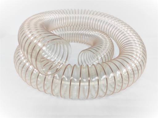Wąż do odpylania PU Flex fi 100 bardzo lekki i elastyczny. Wąż antystatyczny PU fi 100 do pracy w przemyśle drzewnym, chemicznym i tworzyw sztucznych, do transportu lekkich substancji stałych, a także do powietrza i gazu. Elastyczny wąż wyciągowy PUR fi 100 do trocin i odpylania z dobrą rozciągliwością i dużą odpornością na ścieranie. Wąż do CNC 100