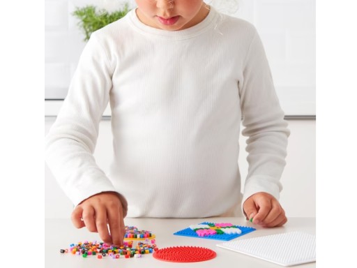 Prezentowany zestaw to propozycja dla maluchów, które uwielbiają tworzyć. Koraliki do prasowania sprawdzą się jednak również u dzieci, które potrzebują doskonalić takie umiejętności jak: zdolności motoryczne, wyobraźnię przestrzenną, precyzję i kreatywność. Zabawka także pomaga się skoncentrować i wyciszyć. Dodatkowo przy układaniu może brać udział cała rodzina.