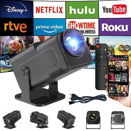 Jasność 10000lm | 390 Ansi | Bluetooth | Full HD | Rozdzielczość 1920 x 1080 | HDMI | Android | Smart Tv | Przekątna obrazu od 30 do 150 cali | Wi-Fi | Nowsza wersja projektora hy300 | Obrotowy |