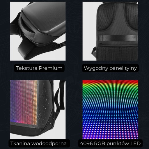 - Z łatwością personalizuj wygląd swojego plecaka LED dzięki intuicyjnej aplikacji.