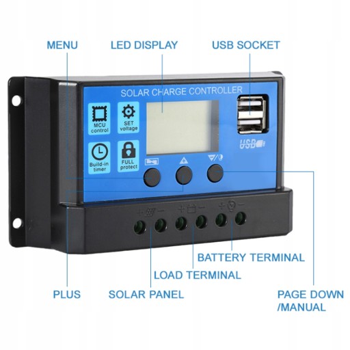 Lista pakietów:1 x Solar Charge Controller1 x Instrukcja