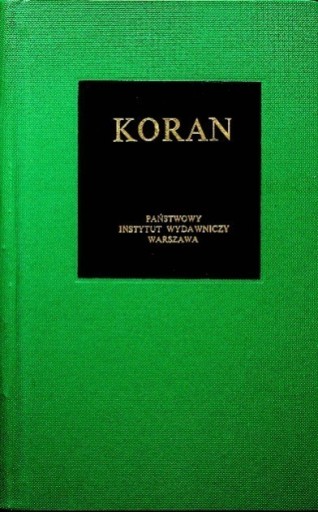 Koran – święta księga islamu. Według tradycji muzułmańskiej powstawał w latach 610-632, objawiany fragmentami prorokowi islamu, Mahometowi (zm. 632) przez Archanioła Dżibrila (identyfikowanego w islamie z biblijnym archaniołem Gabrielem). Słowo „Koran” pochodzi od arabskiego słowa al-kur'an, które oznacza „recytację”, ponieważ pierwotnie Koran przekazywano ustnie. Według islamu i samego Koranu jego twórcą jest Allah. Koran składa się ze 114 sur (rozdziałów), które z kolei dzielą się na aje (wersety). Rozróżnia się 90 sur mekkańskich i 24 sury medyńskie, ze względu na miejsce ich objawienia. Sury są w Koranie ułożone przeważnie według długości, od najdłuższej do najkrótszej. W wielu państwach o tradycji muzułmańskiej Koran uważany jest za jedno ze źródeł prawa, przede wszystkim w zakresie prawa cywilnego. Koran inspiruje od wieków muzułmańskich myślicieli i autorów. Wśród proroków wymienia postacie z Biblii Starego i Nowego Testamentu, wśród nich Jezusa, oraz przytacza wydarzenia opisane w Biblii. Formułuje przepisy nie tylko dotyczące praktyk religijnych, ale i stricte natury prawnej, oraz nawet powszednich przejawów życia, jak higiena, savoir-vivre. Według samego Koranu jego twórcą jest Allah: ==Ten Koran nie mógł być wymyślony poza Bogiem! On jest potwierdzeniem prawdziwości tego, co było przed nim, i wyjaśnieniem Księgi – co do której nie ma żadnej wątpliwości – pochodzącej od Pana światów. Oni, być może, powiedzą: ,,Wymyślił go!" Powiedz: ,,Przynieście więc surę podobną do niego i wzywajcie, kogo możecie, poza Bogiem, jeśli jesteście prawdomówni!"==. ! Uwagi: Oprawa minimalnie wytarta, zabrudzona. Brzegi stron zakurzone i zabrudzone. Strony pożółkłe.