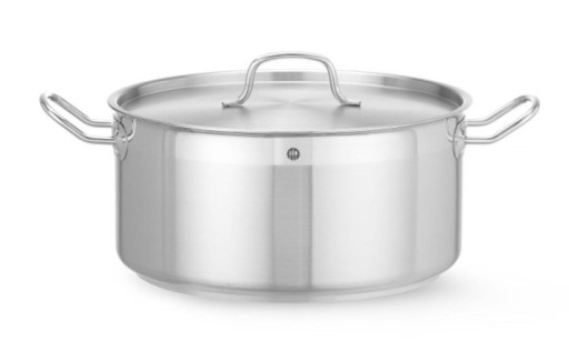 Numer : Hendi 830000 Niski garnek z serii Profi Line Hendi to naczynie, które znajdzie zastosowanie w profesjonalnej gastronomi Wykonany jest ze stali nierdzewnej, a jego zewnętrzna powierzchnia jest satynowana z polerowanym rantem Dno garnka to konstrukcja typu "sandwich" (stal nierdzewna 304, 18/10 – aluminium 5 mm – stal nierdzewna 430, 18/0, min 0,5 mm), która łączy w sobie właściwości aluminium w zakresie rozprowadzania ciepła z trwałością i właściwościami magnetycznymi stali nierdzewnej. Dno garnka zostało wyprodukowane w technologii IMPACT BONDING, która zapewnia idealne łączenie warstw i tym samym odporność na korozję oraz zwiększone przewodzenie ciepła. Kwastoodporna stal we wnętrzu garnka umożliwia przygotowywanie kwaśnych posiłków, a solidne nienagrzewające się uchwyty zapewniają komfortową pracę z garnkiem. Cechy i funkcje: