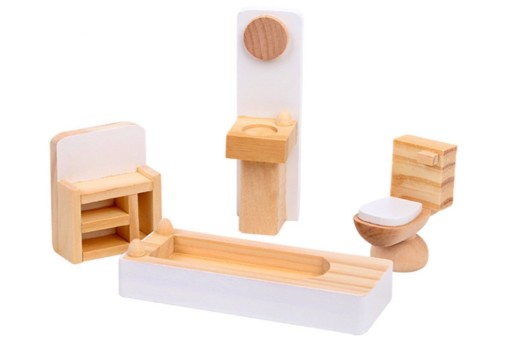 - Mebelki do łazienki: umywalkę, wannę, toaletę, szafkę łazienkową