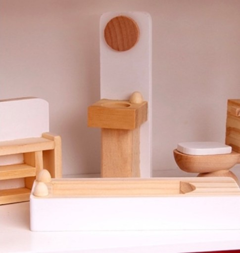 Zabawa Drewnianym Domkiem pozwoli dziecku na rozwój jego wyobraźni i motoryki, nauczy organizacji przestrzeni, planowania i wykonywania obowiązków domowych.
