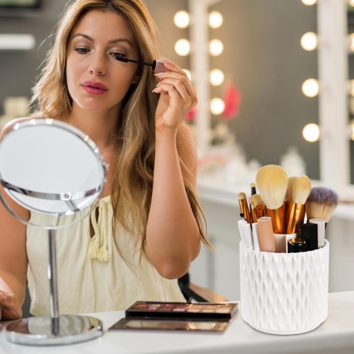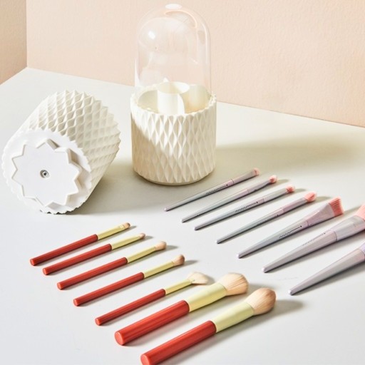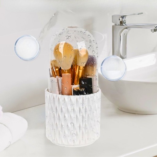 Nie czekaj – dzięki naszemu obrotowemu organizerowi na pędzle, Twoja przestrzeń będzie zawsze zorganizowana, a pędzle i kosmetyki w idealnym porządku