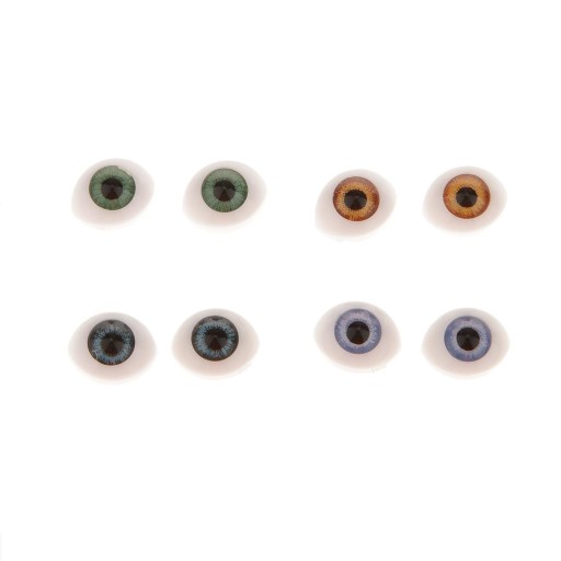 Cztery pary oczu dla lalek lub. Dostępne w czterech kolorach: szarym, brązowym, niebieskim i zielonym, z każdym kolorem po parze. Te oczy są świetnej roboty i są bardzo. Oczy lalki mają owalny kształt, są płaskie i puste w tylnej części. Są świetnym dodatkiem do majsterkowania.