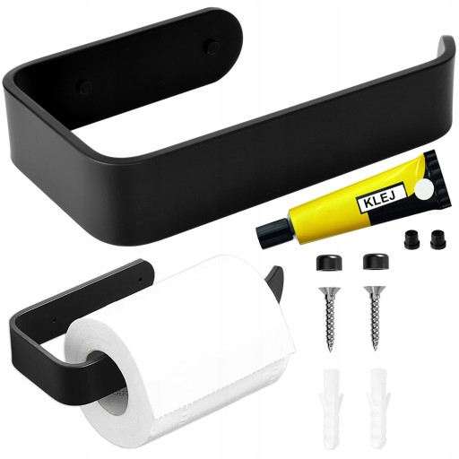 UCHWYT NA PAPIER TOALETOWY CZARNY METALOWY LOFTOWY NA KLEJ LUB KOŁKI