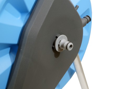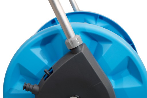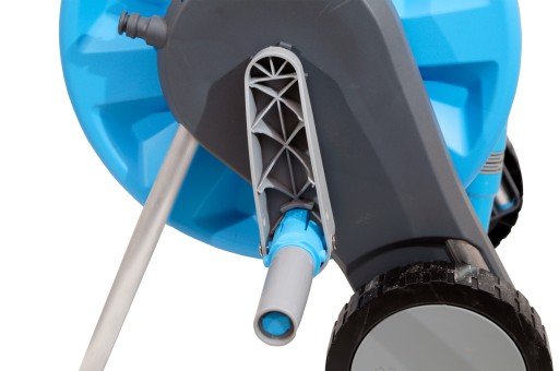 Skłądana, ergonomiczna korbka zwiększa wygodę użytkowania. Możliwość wbicia nóżek w podłoże zwiększa stabilność wózka wraz z wężem.
