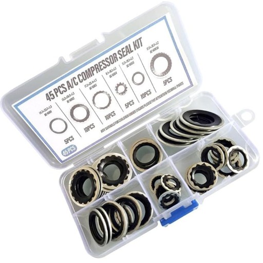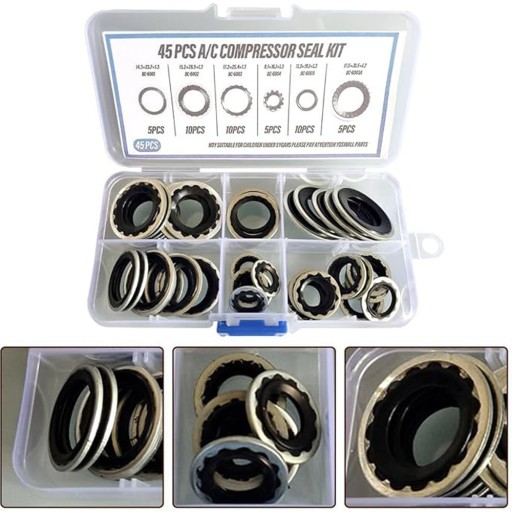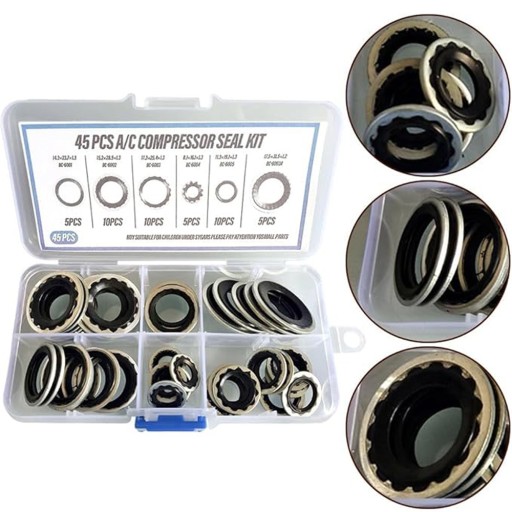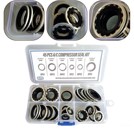【Praktyczne opakowanie】Otrzymasz zestaw 45-częściowych tarczy uszczelniających sprężarki klimatyzacyjnej. Uszczelki są starannie uporządkowane w przezroczystym plastikowym pudełku z przedziałami, co ułatwia szybkie znalezienie odpowiedniego rozmiaru. Oszczędza to cenne i eliminuje wszelkie kłopoty podczas instalacji.