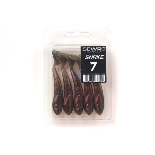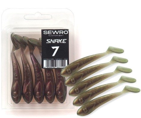 Snake to przynęta ręcznie robiona w Polsce, stworzona przez doświadczonego rękodzielnika Sewro Custom Bait. Doskonała podczas połowu każdego rodzaju drapieżników, świetna na okonia, na pstrąga, na sandacza i na szczupaka. Snake produkowany jest z najwyższej jakości plastisolu, a to w połączeniu z unikalnym kształtem korpusu i kopyta zapewnia niesamowitą skuteczność podczas połowów.
