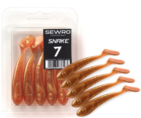 Snake to przynęta ręcznie robiona w Polsce, stworzona przez doświadczonego rękodzielnika Sewro Custom Bait. Doskonała podczas połowu każdego rodzaju drapieżników, świetna na okonia, na pstrąga, na sandacza i na szczupaka. Snake produkowany jest z najwyższej jakości plastisolu, a to w połączeniu z unikalnym kształtem korpusu i kopyta zapewnia niesamowitą skuteczność podczas połowów.