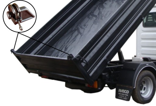 Przedmiotem sprzedaży jest zamknięcie do burty wahliwe do wywrotki. Trzpień o grubości fi 20 - zestaw ma zastosowanie do skrzyń załadunkowych o ładowności do 3,5 tony.