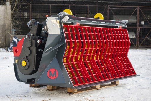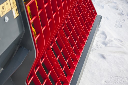- Zoptymalizowany kształt kraty zabezpieczającej z zębami do rozpruwania worków przez którą nabieramy piasek/kruszywo/pasze, chroni ona przed dostaniem się do mieszalnika kamieni i innych zanieczyszczeń, które mogą spowodować uszkodzenie bądź zablokowanie wirnika.