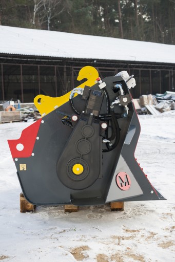 - Betoniarka napędzana jest poprzez instalację hydrauliczną maszyny, na której jest zamontowana.