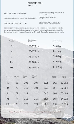 Zastosowanie odzieży przeciwdeszczowej: ponczo motocyklowe / akumulatorowe