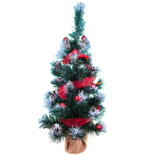 ИСКУССТВЕННАЯ РОЖДЕСТВЕНСКАЯ ЕЛКА СО СНЕГОМ, ДЖУТОВЫЕ БЕЗОПАСНОСТИ, 60 СМ, РОЖДЕСТВЕНСКАЯ ЕЛКА С УКРАШЕНИЯМИ