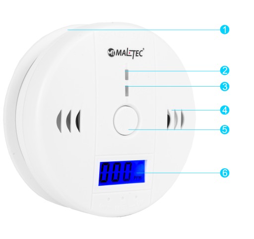 👉 Alarm TLENKU WĘGLA (CO) monitoruje powietrze pod kątem obecności CO. Alarm włączy się i będzie mu towarzyszyć migająca czerwona dioda LED, gdy obecny będzie wysoki poziom CO.