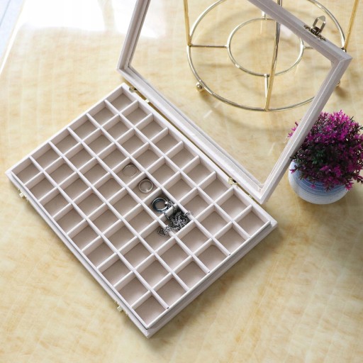 Zbudowany z wytrzymałej płyty kompozytowej owiniętej wysokiej jakości aksamitną tkaniną z wyjmowanymi przegrodami i szklaną pokrywą, aby uporządkować i chronić biżuterię i