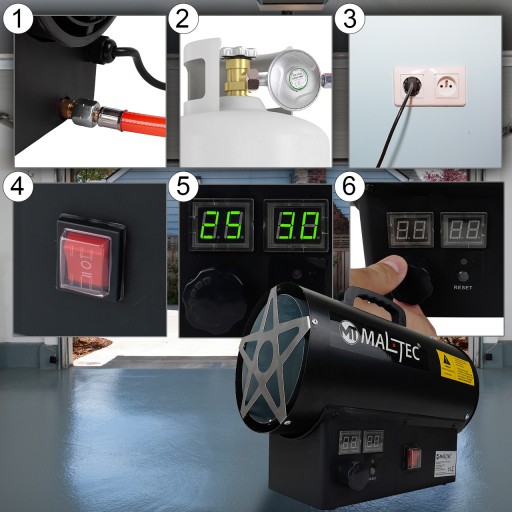 Nagrzewnica Maltec posiada wbudowany termostat oraz regulację temperatury na cyfrowym wyświetlaczu. Od teraz bez problemu można w prosty sposób ustawić pożądaną temperaturę otoczenia.