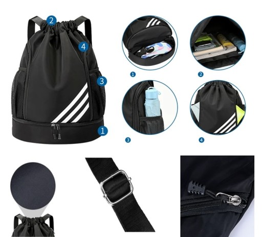 ✔️ Worek sportowy, wielokieszeniowy o pojemności 19 L,