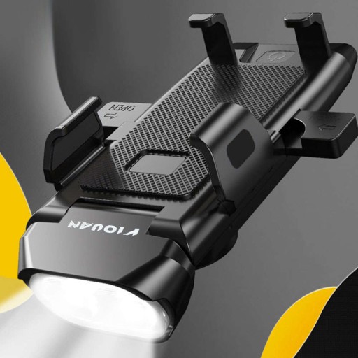 ✅ Uchwyt jest niezwykle funkcjonalny i pełni funkcję aż czterech oddzielnych produktów, które są niezbędne podczas codziennej jazdy na rowerze, w tym: uchwytu rowerowego, lampki rowerowej przedniej, dzwonka oraz powerbanka.