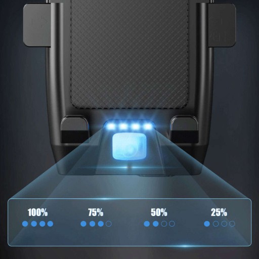 ✅ Uchwyt posiada również diody LED, które informują o stanie naładowania baterii - 4 diody oznaczają 100% naładowania, 3 diody 75%, 2 diody 50% oraz 1 dioda świadczy o 25%.