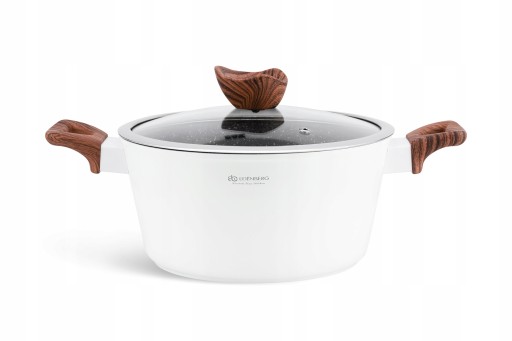 Marmurowe garnki Edenberg zostały wyposażone w uchwyty wykonane z bakelitu, który charakteryzuje się wysoką żaroodpornością.