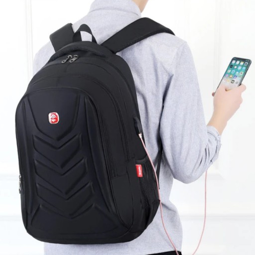 - Liczba kieszeni: 3 komory główne zapinane na zamek błyskawiczny, w komorze głównej znajduje się 1 przegródka na laptopa, standardowe wejście oraz kabel USB, przednia ściana plecaka usztywniona i wzmocniona, posiada 2 boczne kieszenie na butelkę bądź bidon, na tylnej ścianie plecaka mała kieszonka antykradzieżowa zapinana na zamek błyskawiczny