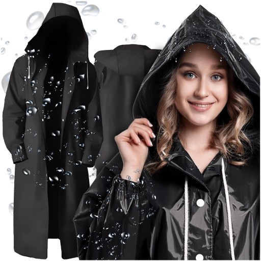 ☔️ OCHRONA PRZED DESZCZEM ☔️ ZAPINANIE NA ZATRZASKOWE GUZIKI ☔️ UNIWERSALNY☔️ DŁUGI PŁASZCZ ➕ KAPTUR ☔️WODOODPORNY MATERIAŁ