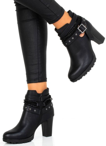 7923 CZARNE BOTKI NA SŁUPKU SKÓRZANE PASKI Z DŻETAMI 37