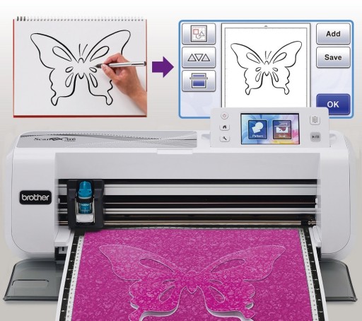 Wykorzystuje wzory z pamięci urządzenia ale współpracuje również z programami graficznymi do projektowania haftów i hafciarkami. Wysokiej jakości skaner wbudowany w urządzenie pozwala na zeskanowanie narysowanego wzoru a następnie wycięcie go.