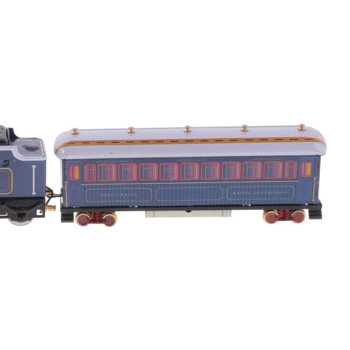 Vintage model pociągu nakręcany mechaniczna blaszana zabawka prezent kolekcjonerski niebieski