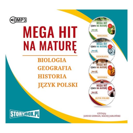 - Tytuł audiobooka: Pakiet Mega hit na maturę. Biologia / Geografia / Historia / Język polski.