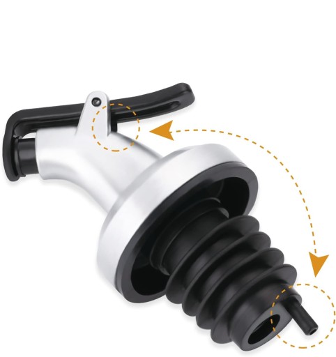 Korek nalewaka wykonany z gumy gwarantuje szczelność między nalewakiem, a szyjką butelki. Kształt nalewaka pozwala na łatwe nalewanie trunków, a także zapobiega kapaniu i spływaniu trunku po szyjce butelki.
